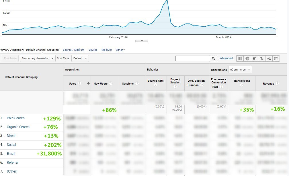 Across the board, when compared to the same period in the previous year, new users are up by a healthy 37%! And, it was done with less of a budget, too. When we shared these outcomes with Allen’s, the response was a déjà vu: “I want more!”